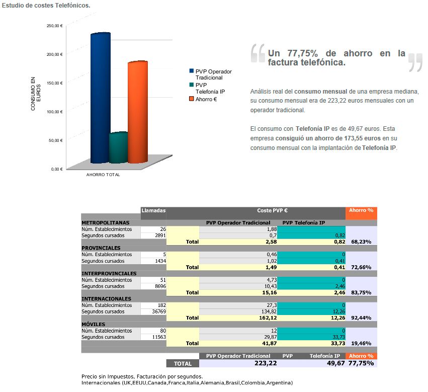 Alcanzamos unos niveles de ahorro frente a la competencia que pueden llegar hasta el 90%. Contamos con nodos de conmutación redundantes, y un servicio técnico propio muy especializado.